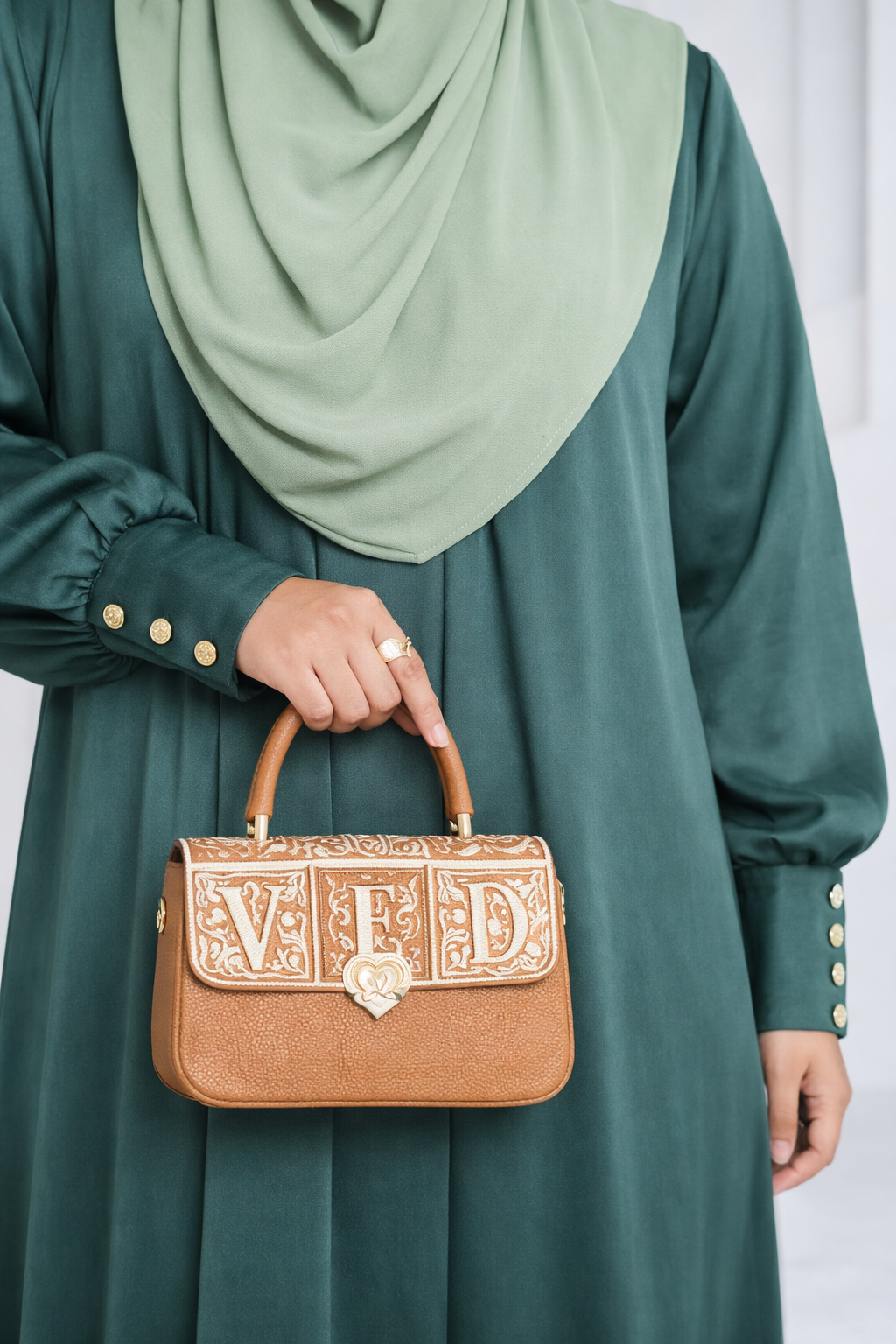 𝑯𝒂𝒏𝒊𝒚𝒂 𝑮𝒐𝒘𝒏 in a deep emerald teal shade is a reflection of refined grace and confident elegance. Crafted with a clean, minimal aesthetic, this gown celebrates timeless modest fashion through its smooth structure and flowing umbrella silhouette.